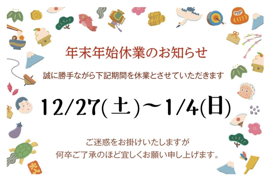 オフィス・オノデラでは2025年12月27日(土)~2026年1月4日(日)までを休業させていただきます。新年1月5日(月)より通常営業いたします。